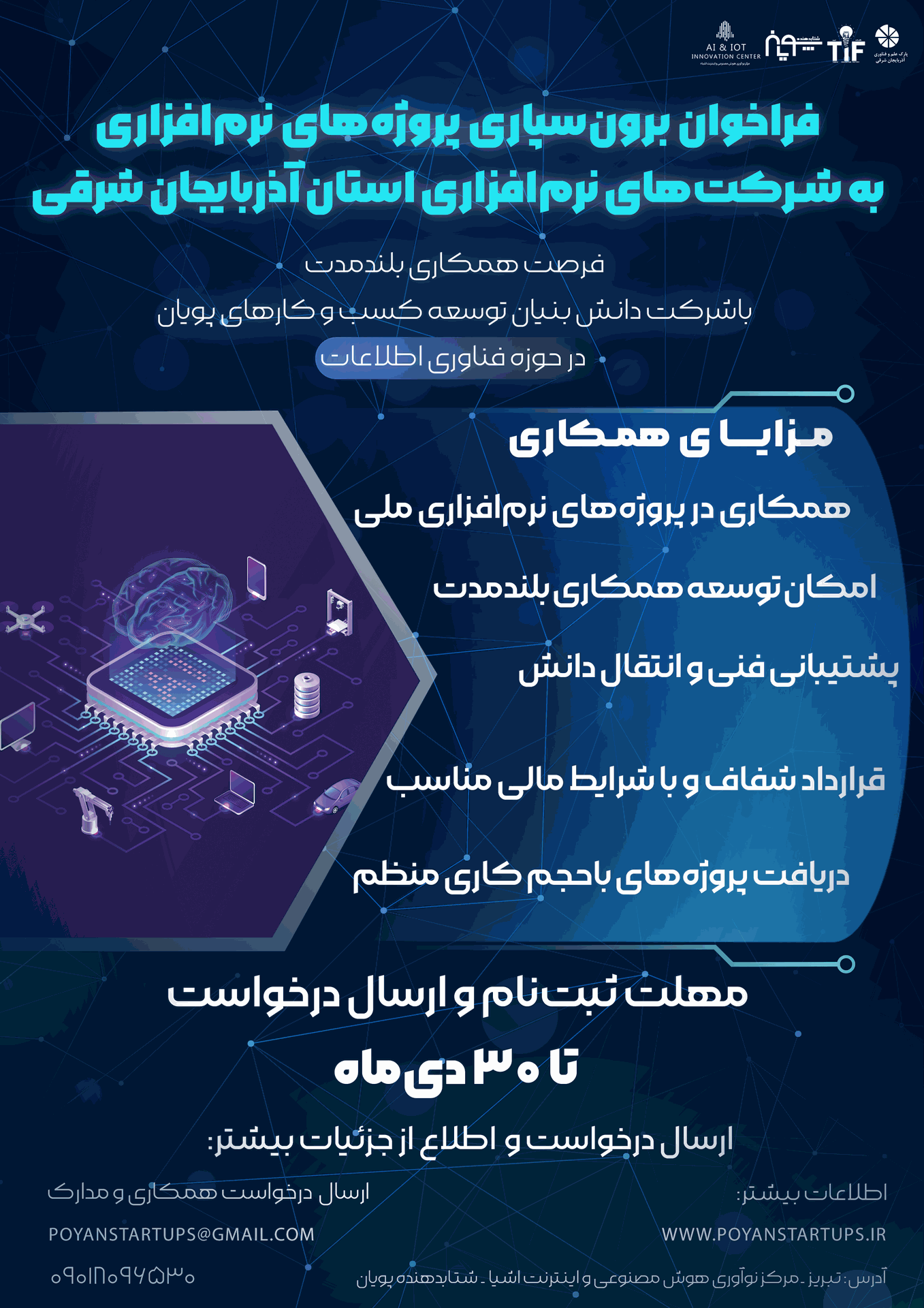 ایمیل: poyanstartups@gmail.com موضوع ایمیل: درخواست همکاری برون‌سپاری - نام شرکت